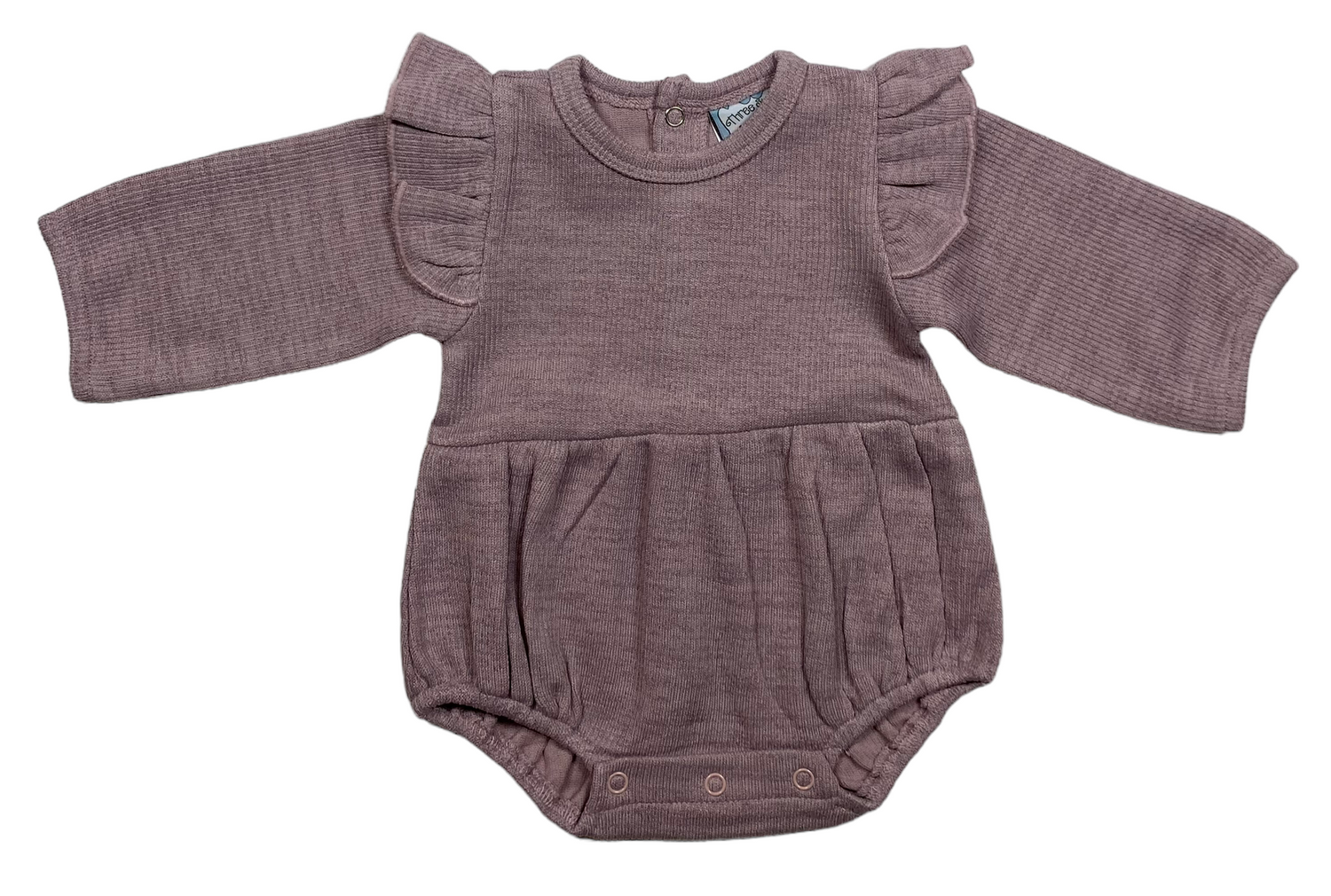 The Three Sisters Raelyn Bubble in purple is a boutique-quality bubble romper featuring soft fabric and a stylish design. Perfect for everyday wear, playdates, or special occasions. 95% cotton. 5% spandex.